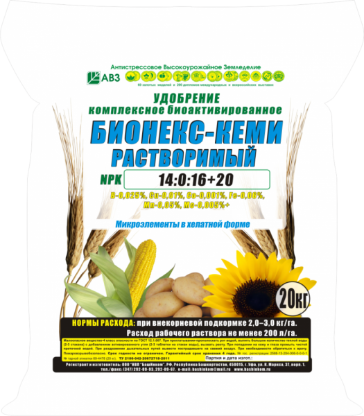 Назначение БИОНЕКС-КЕМИ РАСТВОРИМЫЙ 14:0:16+20