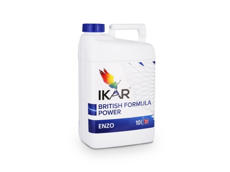 kar Enzo (N11+20Mn+1,2Zn+0,5Pro) – жидкое концентрированное удобрение с марганцем, цинком и аминокислотой L-пролин. Ikar Enzo – высококонцентрированное микроудобрение, основными составляющими которого является марганец (Mn), цинк (Zn) и аминокислота L- пролин. Марганец (Mn) в растениях активирует действие разных ферментов (или входит в их состав), которые имеют важное значение в окислительно-восстановительных процессах и играют ключевую роль в основных жизненно необходимых процессах растений, необходимых для образования хлорофилла и способствует усвоению молекулярного и нитратного азота. Участвуя в синтезе аскорбиновой кислоты в растениях, Марганец (Mn) повышает устойчивость культур к болезням. Сочетание в Ikar Enzo Марганца (Mn) и Цинка (Zn) способствует повышению интенсивности фотосинтеза и дыхания, улучшает синтез углеводов и перемещение их из листьев к органам плодоношения и корневой системы. Аминокислота L-пролин имеет антистрессовый эффект, способствует максимальному усвоению растениями микро и макро элементов